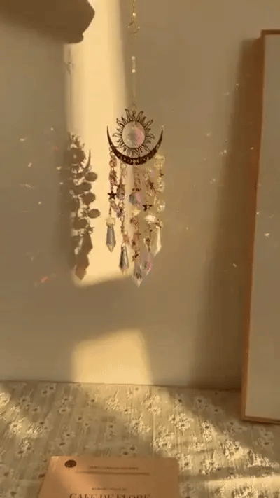 🌈RainbowMaker: Suncatcher has a shiny metal frame with sun, moon and star patterns. Artificial crystals and pendants catch the sunlight and create a dreamy light-shadow effect. The unique design, fine craftsmanship and strong decorativeness make it a captivating work of art.
